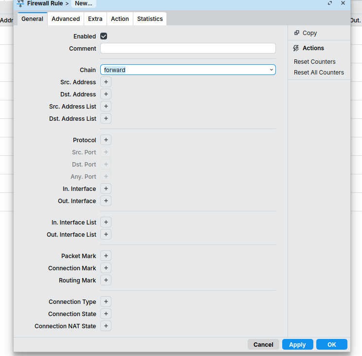 Setelah itu, buat Filter Rules (IP > Firewall > Filter Rules):
