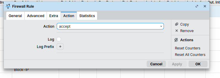 Jika setelah setting ternyata trafik masih tembus atau tidak ada traffic hit pada rule:
